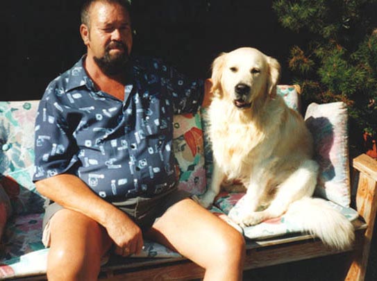 ...hier mit Pflegeherrchen Klaus beim Sonnenbaden - Sommer '99.