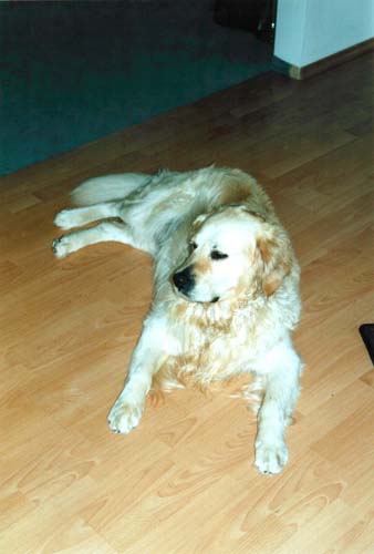 Chester ganz entspannt auf dem Laminat!